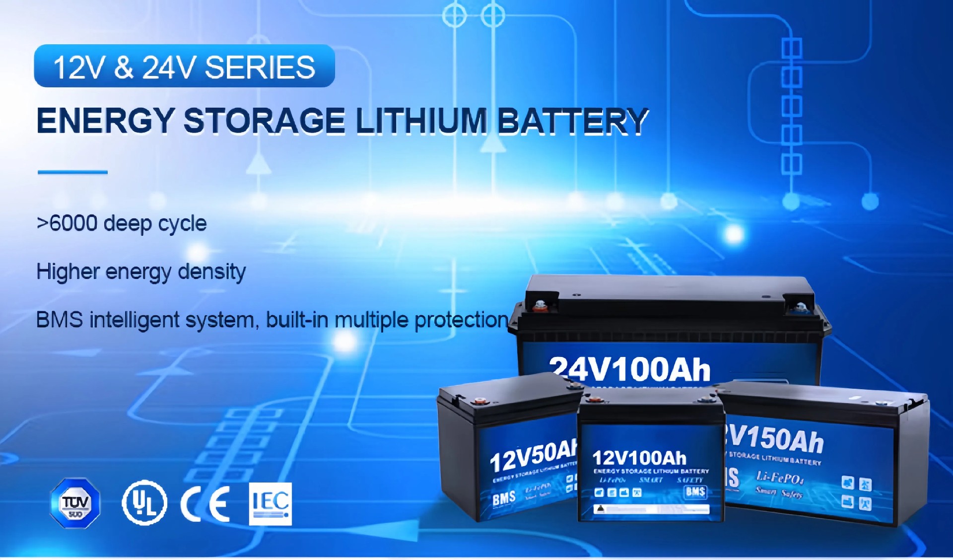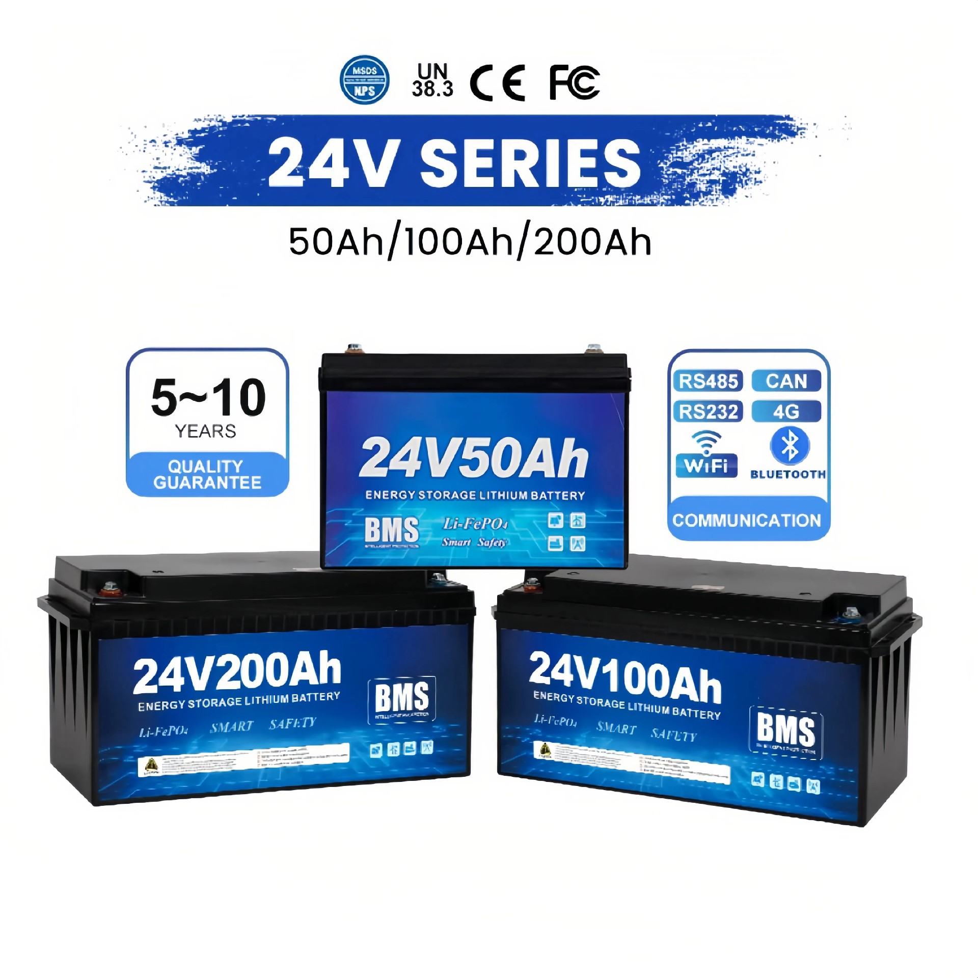 Sistema de armazenamento de energia 12V 24V LiFePO4 Solar Lítio LFP Bateria de íons de lítio 50Ah 100Ah 150Ah 200Ah 300Ah